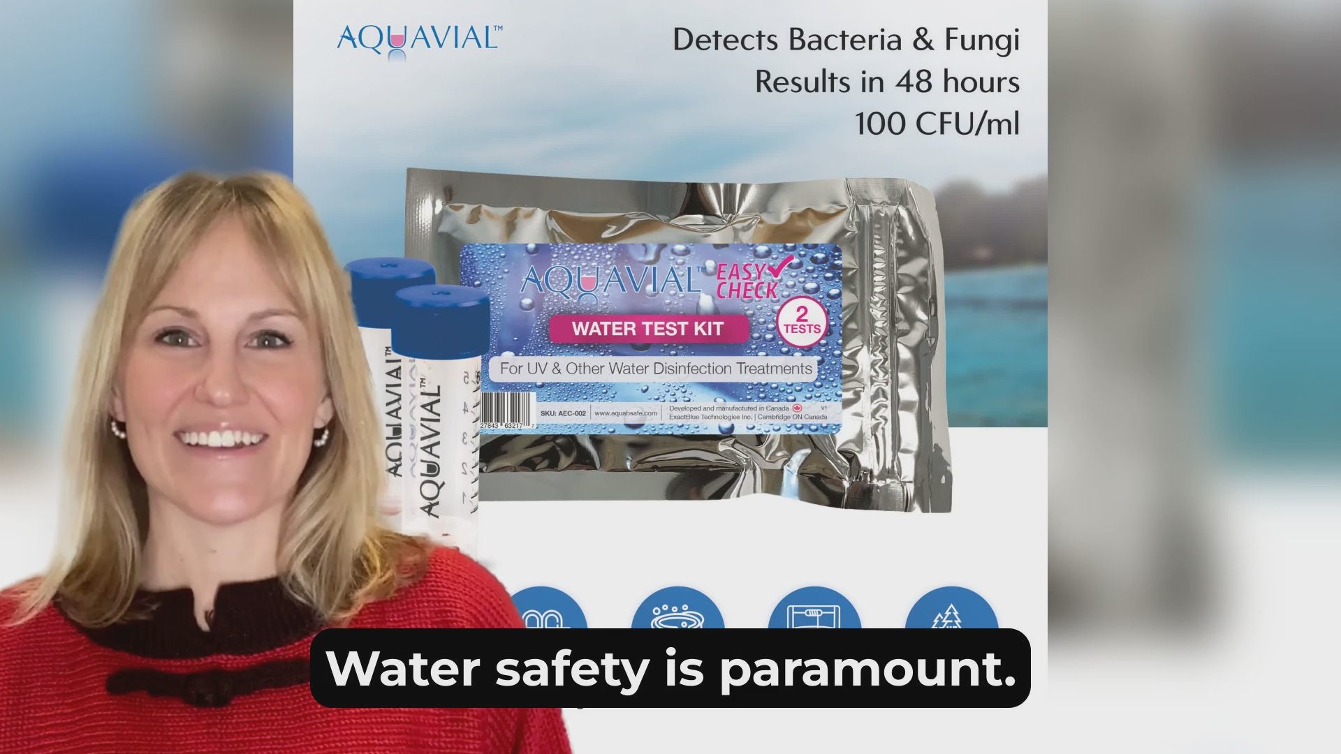 - Make the AquaVial Easy Check your equivalent to lab testing. Detect bacteria at 100 CFU/ml for total confidence in your water’s safety in 48 hours